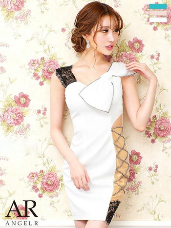 大きなリボンが愛らしい☆ 【Angel R/エンジェルアール】リボン サイドクロス ビジュー タイトミニドレス (AR21210)
