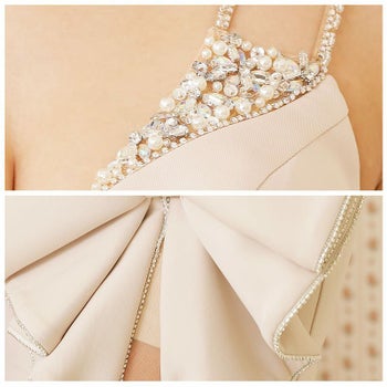 バストアシンメトリー キャミソール セクシー くびれ透け パールビジュータイトミニドレスのイメージ画像6