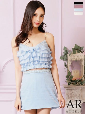 XSあり!ボリュームたっぷりのフリルがCUTE☆ 【Angel R/エンジェルアール】キャミソール ボリューミー アッパー フリルバスト ウエストビジュー セパレート フレアミニドレス (AR24202)