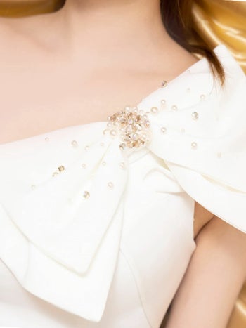 4. SALE【Angel R/エンジェルアール】リボン ワンショルダー ワンカラー パール チェーン セットアップ タイトミニドレス (AR24833)