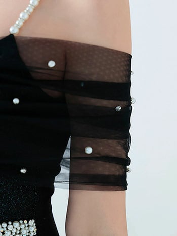 3. 【Angel R/エンジェルアール】ビジュー レース ウエストパール リボンモチーフ 肩あき ラメ ガーリー オープンバスト タイトミニドレス (AR25206)