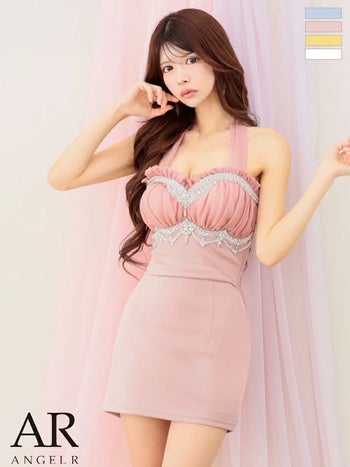キャバドレス Angel R エンジェルアール シフォン ギャザー セットアップ リボンショルダー キャミソール フリル ビジュー タイトミニドレス