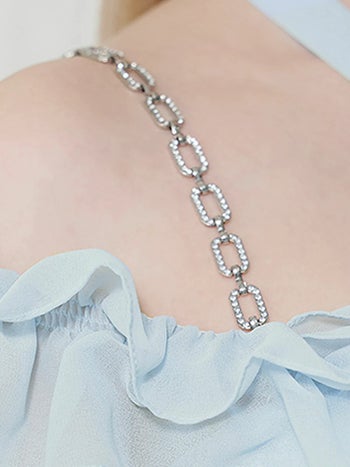3. 【Angel R/エンジェルアール】ガーリー オープンバスト オフショルダー 2way 肩あき リボン ショルダーチェーン付き スパンコール フリル フレアミニドレス (AR25224)