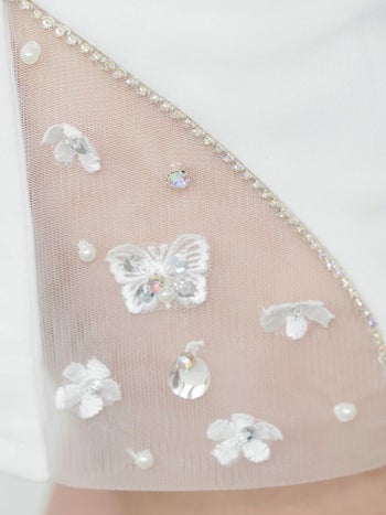 4. 【Angel R/エンジェルアール】くびれ透け フラワー レース フリル ビジュー フェミニン バストカット ホルターネック タイトミニドレス (AR25225)