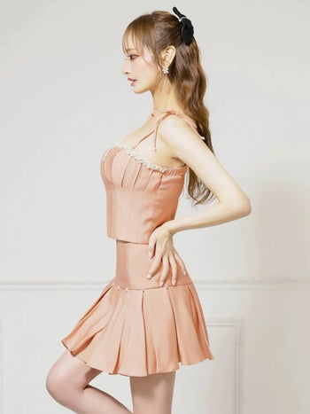 キャバドレス Angel R エンジェルアール ベア ガーリー キャミソール セットアップ プリーツ バストタック フレアミニドレス