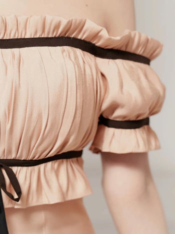 4. 【Angel R/エンジェルアール】バイカラー リボン 半袖 オフショルダー ギャザー ガーリー フレアミニドレス (AR25228)