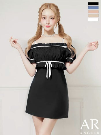 キャバドレス Angel R エンジェルアール バイカラー リボン オフショルダー ギャザー ガーリー 半袖 フレアミニドレス