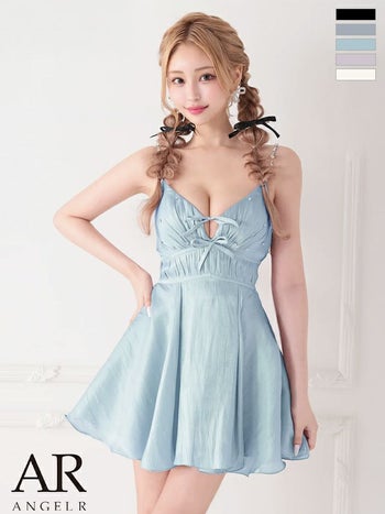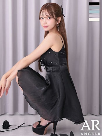 キャバドレス Angel R エンジェルアール ガーリー キャミソール Vカット レースアップ リボン ウエストマーク ビジュー パール フレアミニドレス
