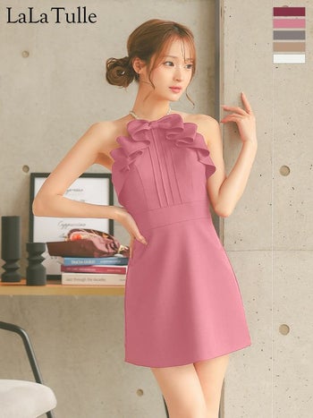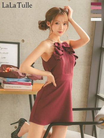 キャバドレス Angel R エンジェルアール パールショルダー フリルリボン キャミソール ガーリー フレアミニドレス