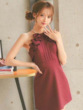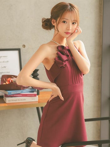 キャバドレス Angel R エンジェルアール フリルリボン パールショルダー ガーリー キャミソール フレアミニドレス