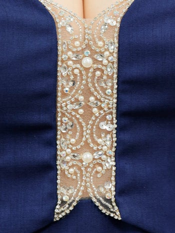 XSあり!洗練された印象を与えるデザイン♪ 【Angel R/エンジェルアール】フェミニン オープンバスト クロスネックデザイン リボン ビジュー プリーツスカート フレアミニドレス (AR25240)