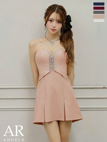 キャバドレス Angel R エンジェルアール オープンバスト クロスネックデザイン リボン ビジュー プリーツスカート セットアップ フェミニン フレアミニドレス