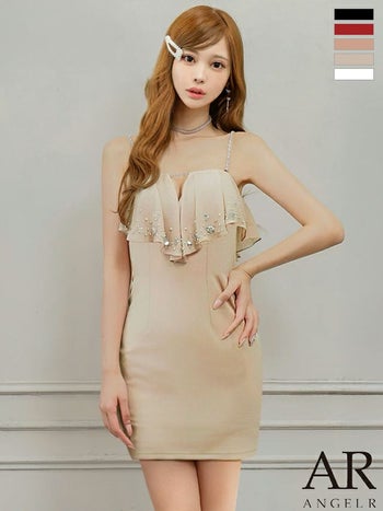 キャバドレス Angel R エンジェルアール フェミニン 2way ベアトップ キャミソール バストフリル Vカット ビジュー タイトミニドレス