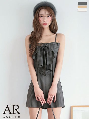 キャバドレス Angel R エンジェルアール キャミソール ビックリボン ベアトップ ストライプ ガーリー Aラインミニドレス