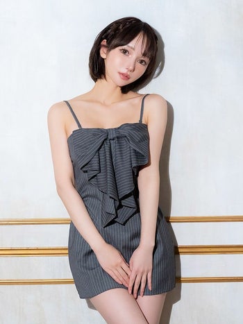 キャバドレス Angel R エンジェルアール キャミソール ガーリー ベアトップ ビックリボン ストライプ Aラインミニドレス