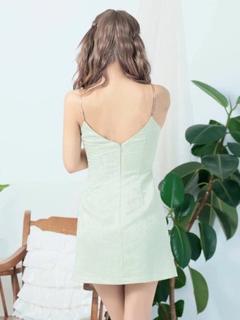 4. 【Angel R/エンジェルアール】オープンバスト キャミソール ガーリー ビジュー パール 刺繍 フレアミニドレス (AR25307)