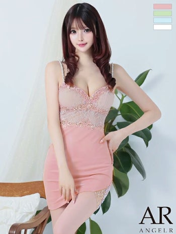 3. 【Angel R/エンジェルアール】キャミソール パール レース 刺繍 ビジュー ガーリー オープンバスト タイトミニドレス (AR25309)