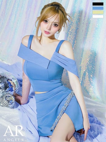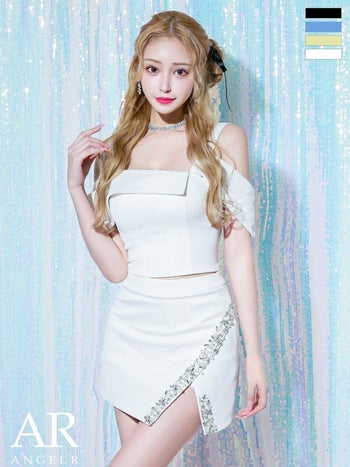 キャバドレス Angel R エンジェルアール アシンメトリー ビジュー スリット セットアップ フェミニン 肩あき タイトミニドレス