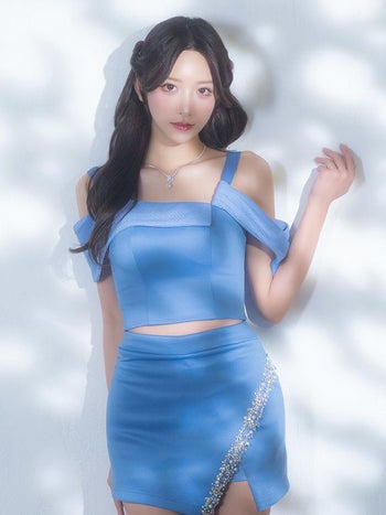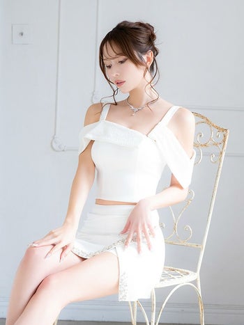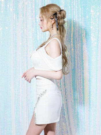 3. 【Angel R/エンジェルアール】肩あき アシンメトリー ビジュー スリット セットアップ フェミニン タイトミニドレス (AR25318)