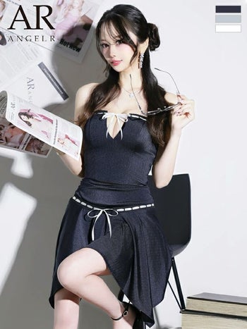 キャバドレス Angel R エンジェルアール バストリボン サテン セットアップ キャミソール アシンメトリー フレアミニドレス