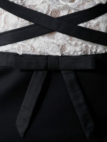 3. 【Angel R/エンジェルアール】キャミソール フロントレース クロスデザイン リボン バイカラー フェミニン オープンバスト タイトミニドレス (AR25325)