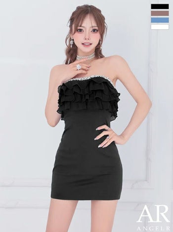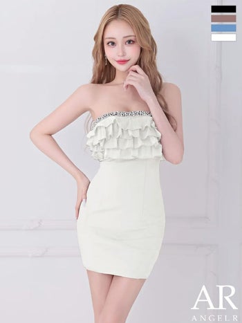 キャバドレス Angel R エンジェルアール ビジュー フェミニン ベアトップ フリル タイトミニドレス