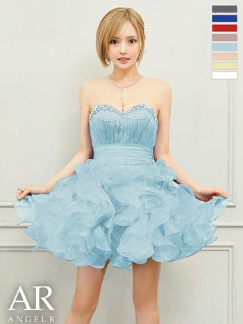 キャバドレス Angel R エンジェルアール バースデー ベアトップス ハートカット キャミソール ビジュー パールチェーン ウエストマーク フリル フレアミニドレス