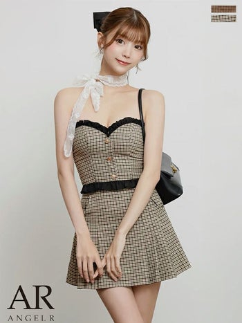 キャバドレス Angel R エンジェルアール ベアトップ フリル キャミソール 2way プリーツスカート セットアップ チェック柄 Aラインミニドレス