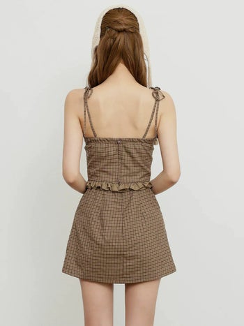 3. 【Angel R/エンジェルアール】ベアトップ フリル キャミソール 2way プリーツスカート セットアップ チェック柄 フレアミニドレス (AR25341)