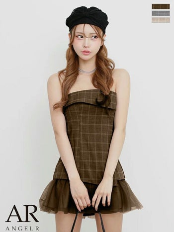 キャバドレス Angel R エンジェルアール フリル ガーリー ベアトップ チュール チェック柄 Aラインミニドレス