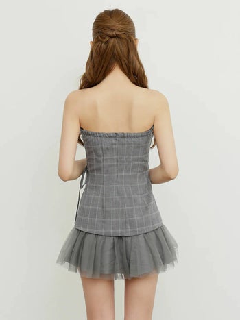 3. 【Angel R/エンジェルアール】フリル ガーリー ベアトップ チュール チェック柄 フレアミニドレス (AR25342)
