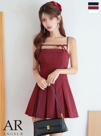 キャバドレス Angel R エンジェルアール リボン プリーツ ガーリー キャミソール レース Aラインミニドレス