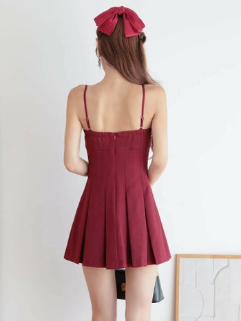 4. 【Angel R/エンジェルアール】リボン プリーツ ガーリー キャミソール レース フレアミニドレス (AR25346)