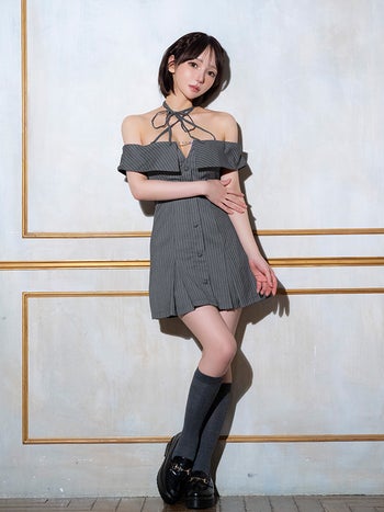 3. オフショルダー ミニドレス