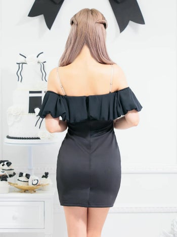 3. 【Angel R/エンジェルアール】シフォン ビジュー ガーリー オープンバスト オフショルダー フリル タイトミニドレス (AR25801)