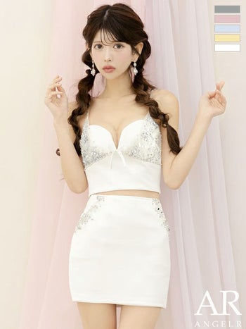 キャバドレス Angel R エンジェルアール キャミソール メッシュ ビジュー リボン セットアップ タイトミニドレス