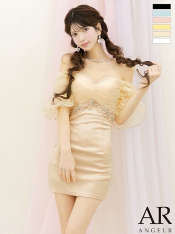 キャバドレス Angel R エンジェルアール 肩あき シフォン フラワーレース ビジュー ガーリー オープンバスト タイトミニドレス