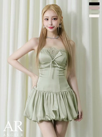 XSあり!ふんわり広がるバルーンスカートが愛らしい♪ 【Angel R/エンジェルアール】リボン バルーンスカート フェミニン ベアトップ バストレース フレアミニドレス (AR25831)