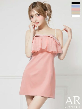 キャバドレス Angel R エンジェルアール フェミニン 2way ベアトップ キャミソール パールチェーン フリル リボン ビジュー フレアミニドレス