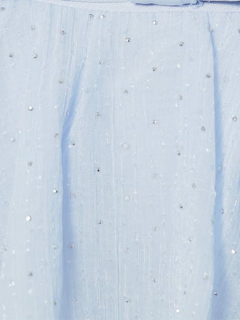3. 【Angel R/エンジェルアール】フェミニン 2way ベアトップ キャミソール パールチェーン フリル リボン ビジュー フレアミニドレス (AR25835)