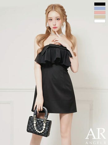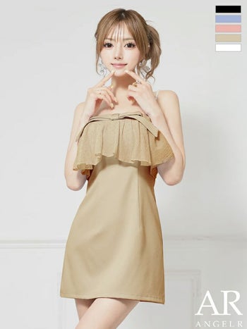 キャバドレス Angel R エンジェルアール 2way ベアトップ キャミソール パールチェーン フリル リボン ビジュー フェミニン フレアミニドレス