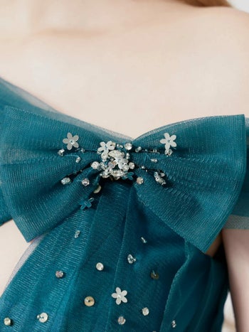 4. 【Angel R/エンジェルアール】バストカット リボン メッシュ ビジュー セットアップ フェミニン ワンショルダー タイトミニドレス (AR25838)