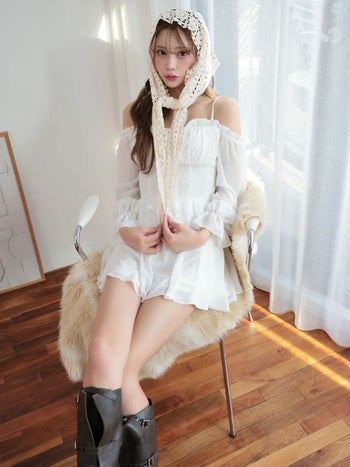 3. オフショルダー ミニドレス
