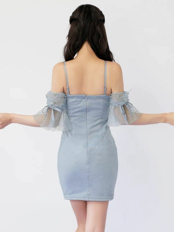 4. 【Angel R/エンジェルアール】シアースリーブ キャミソール メッシュ ベアトップ ビジュー オフショル風 フラワー リボン フェミニン タイトミニドレス (AR26306)