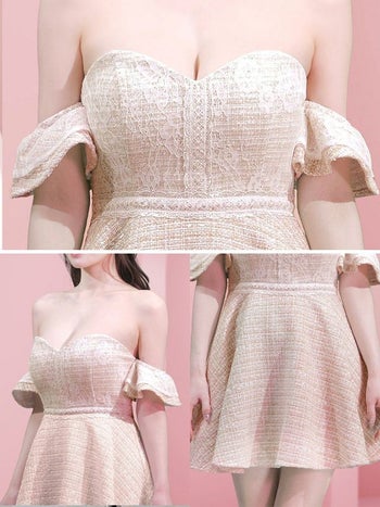 4. 【JENNNY/ジェニー】オフショルダー ツイード ガーリー ホワイトレース ハイウエスト切替 フレアミニドレス
