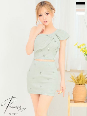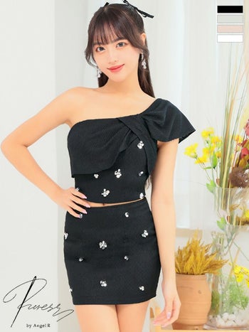 キャバドレス ブランド ビックリボン ワンショルダー ビジュー セットアップ ガーリー タイトミニドレス