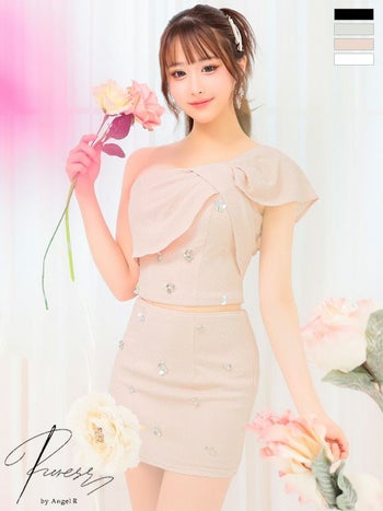 キャバドレス ブランド ワンショルダー ビジュー セットアップ ガーリー ビックリボン タイトミニドレス