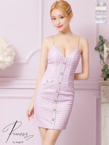 XSあり!周囲を魅了するドレス☆ 【PURESS/ピュアレス】キャミソール シンプル フェイクポケット フロントボタンパール キュート チェック柄 ショルダー タイトミニドレス (PS802402)