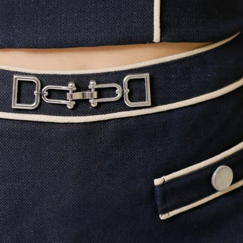 バイカラー チェーンショルダー ボタンチャーム オフショルダー セパレート フレアミニドレス のイメージ画像7