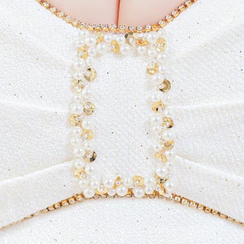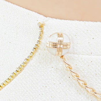 バストビジュー リボン パフスリーブ 半袖 パールチェーンバックル ツイード セットアップ フレアミニドレス